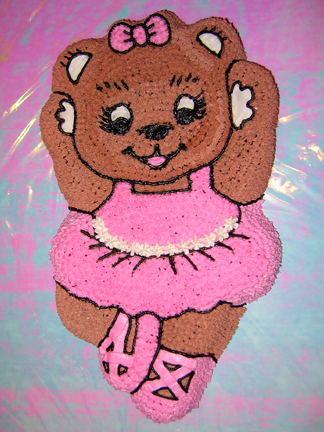 Two other friends and colleagues of mine, Linh and Karen, wanted to learn how to decorate cakes. So, since these two cakes were so simple to decorate, it was the perfect opportunity for them to learn basic piping skills. Linh decorated the chopper symbol and Karen decorated the ballerina bear. I made the letters with color flow icing.